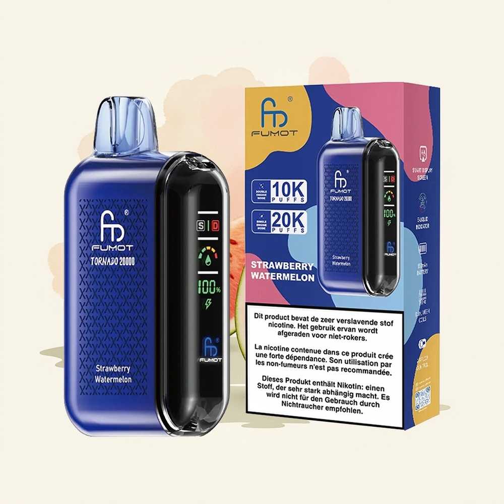 Fumot Tornado 20000 Puffsは、長時間の使用と優れたパフォーマンスを求める方に最適なデバイスです。wholesale Japanese市場向けに設計されたこの製品は、デュアルメッシュコイル、大容量リキッド、スマートディスプレイを搭載し、快適で便利な喫煙を実現します。