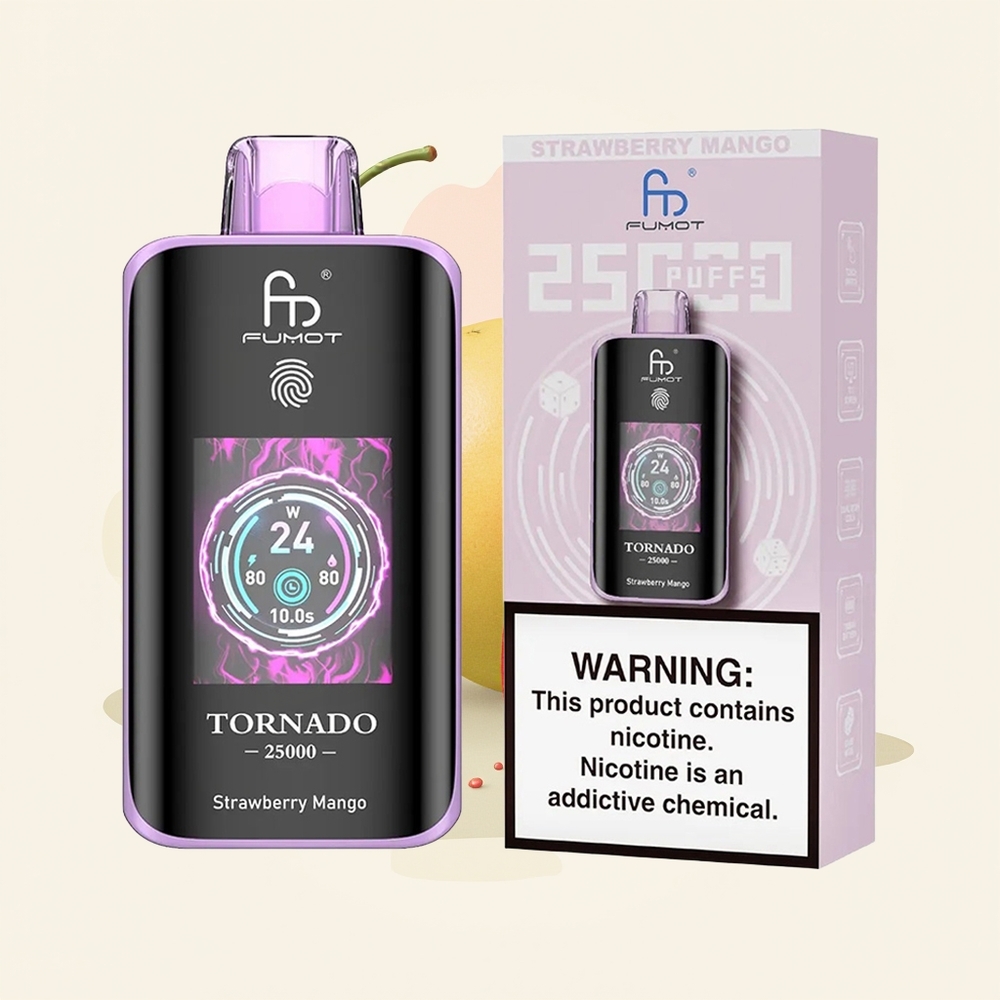 Fumot Tornado 25000 Puffsは、充電式設計と大容量リキッドにより、頻繁な充電やリキッド補充の手間を軽減。HDスクリーンで残量をリアルタイム確認できるため、切れ際の不安も解消されます。wholesale Japanese市場でも人気のモデルで、個人利用はもちろん、業務用としても最適です。