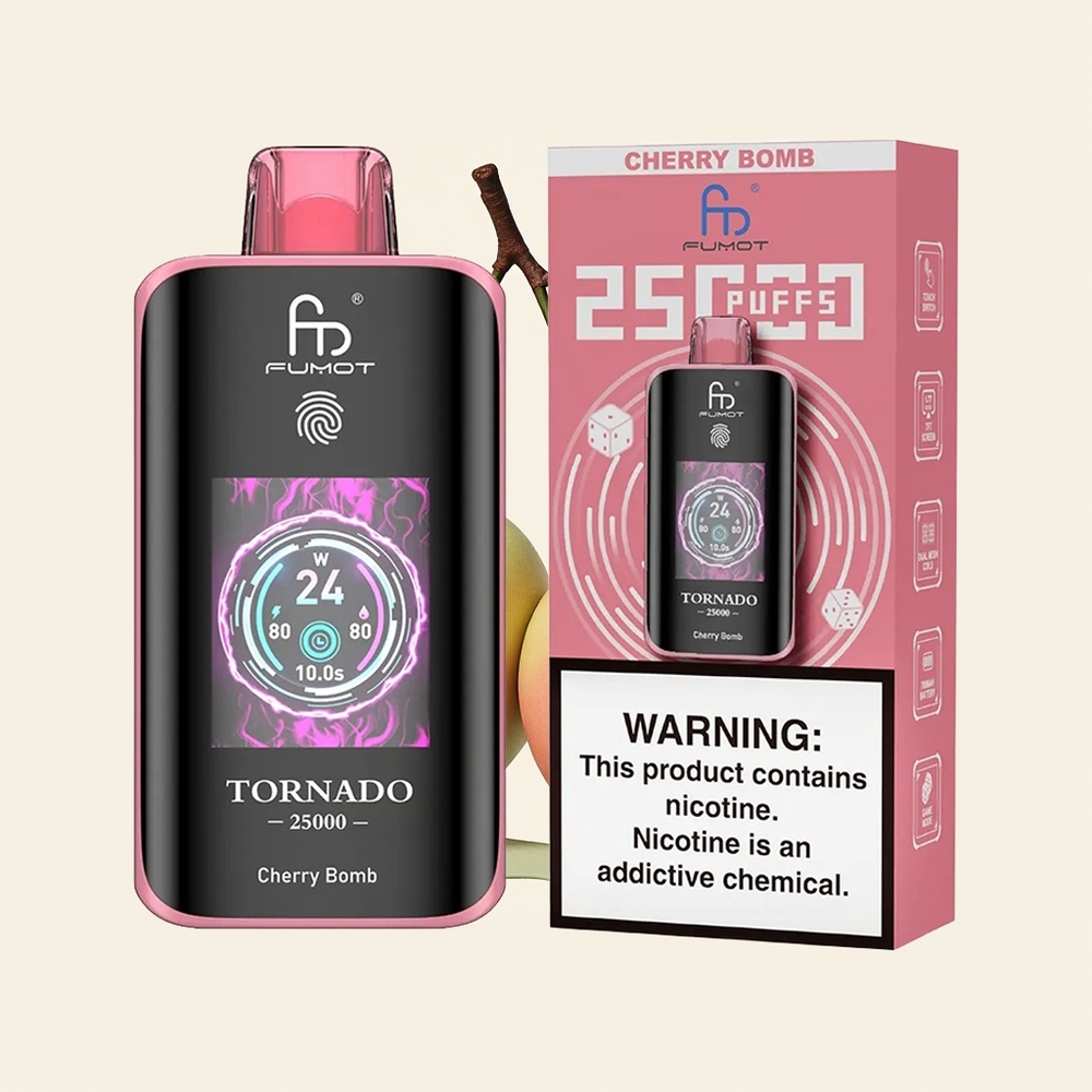 Fumot Tornado 25000 Puffsは、充電式設計と大容量リキッドにより、頻繁な充電やリキッド補充の手間を軽減。HDスクリーンで残量をリアルタイム確認できるため、切れ際の不安も解消されます。wholesale Japanese市場でも人気のモデルで、個人利用はもちろん、業務用としても最適です。