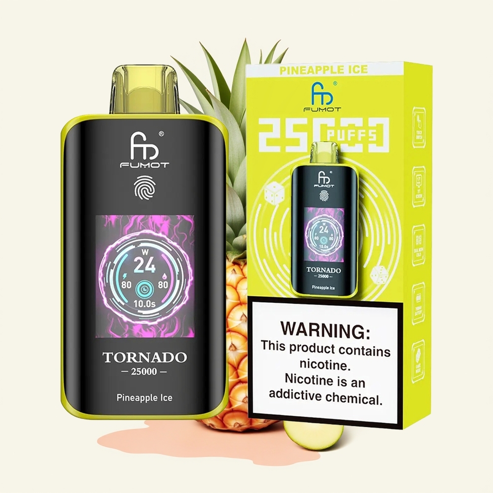 Fumot Tornado 25000 Puffsは、充電式設計と大容量リキッドにより、頻繁な充電やリキッド補充の手間を軽減。HDスクリーンで残量をリアルタイム確認できるため、切れ際の不安も解消されます。wholesale Japanese市場でも人気のモデルで、個人利用はもちろん、業務用としても最適です。